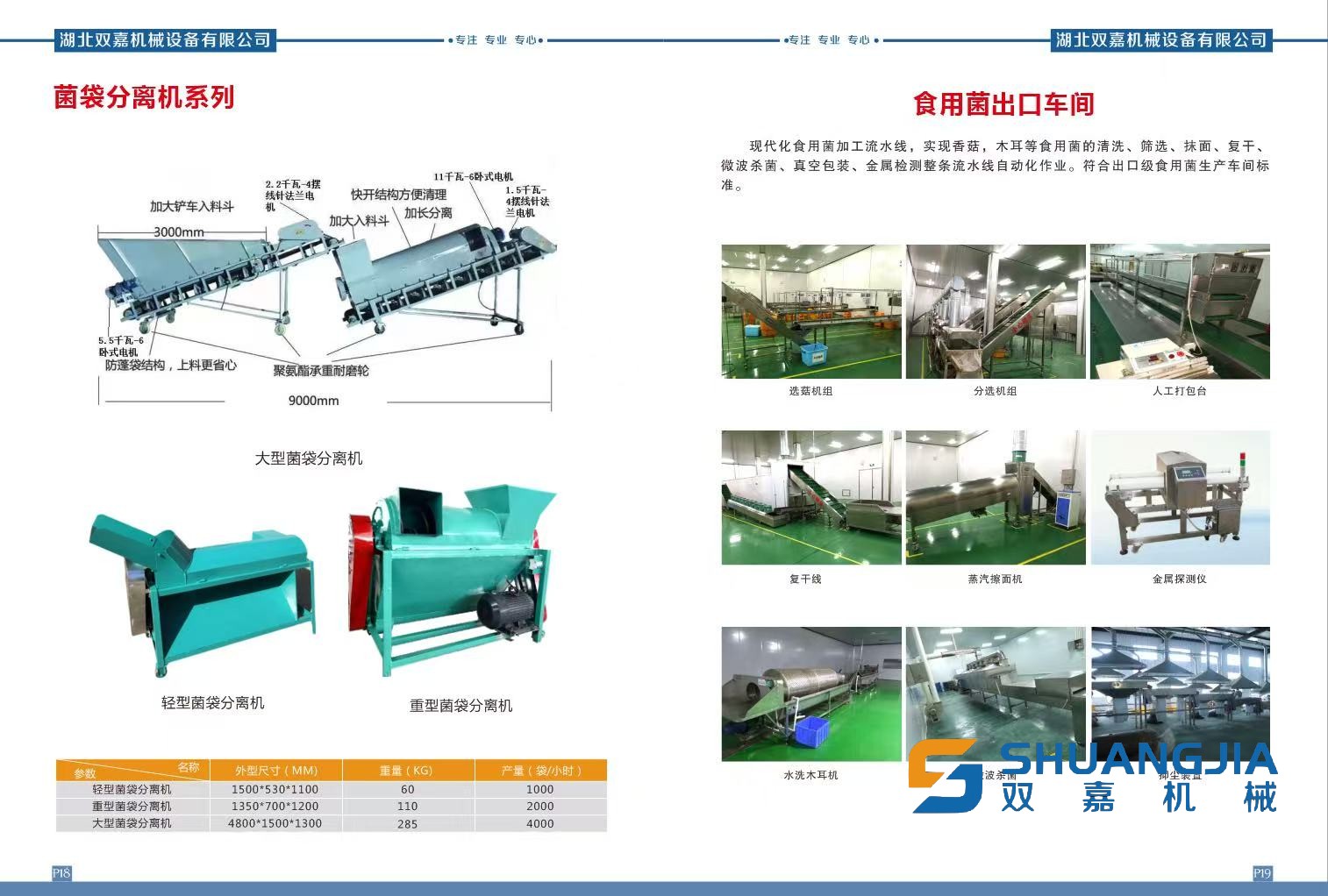 湖北雙嘉機(jī)械設(shè)備有限公司重磅推出平菇、香菇、天麻、伏岑、黑木耳、草菇、羊肚菌等菌菇菌種專用全流程智能生產(chǎn)線,以標(biāo)準(zhǔn)化、自動(dòng)化、智能化裝備,破解食用菌種植用工多、效率低、污染率高、品質(zhì)不穩(wěn)等痛點(diǎn),為規(guī)?;⒐S化栽培提供一站式解決方案,助力食用菌產(chǎn)業(yè)提質(zhì)增效、轉(zhuǎn)型升級(jí)。